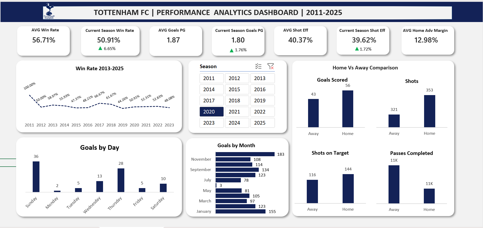 - Structured data tables for season-by-season comparisons